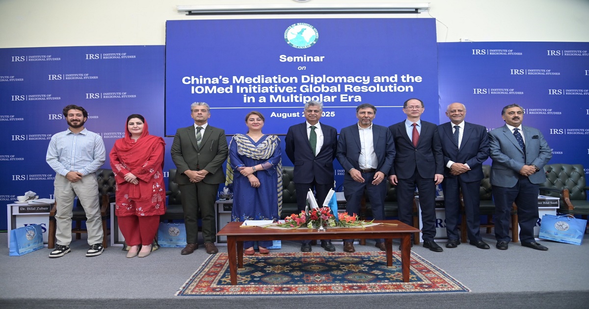 ISLAMABAD (DI NEWS) : The China Program at the Institute of Regional Studies (IRS), Islamabad, hosted a high-level seminar on “China’s Mediation Diplomacy and the IOMeD Initiative: Global Dispute Resolution in a Multipolar Era.” Experts, mediators, and policymakers discussed the significance of the newly established International Organization for Mediation (IOMed) and its potential role in reshaping global dispute resolution.