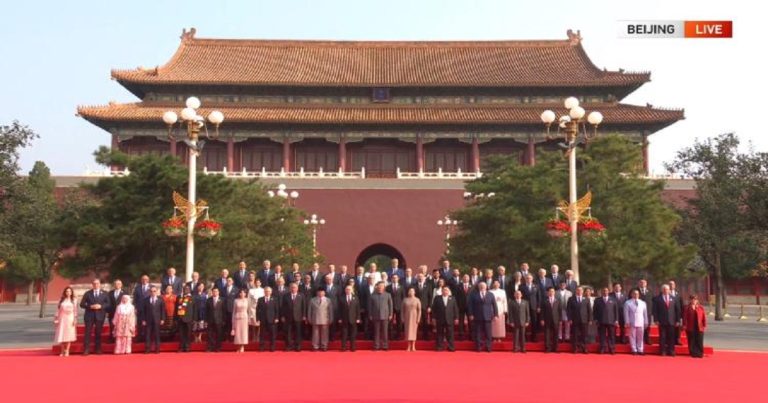 They then took a group photo. After that, Xi, together with these international guests, walked up the Tian’anmen Rostrum at the heart of China’s capital to watch the upcoming massive military parade.