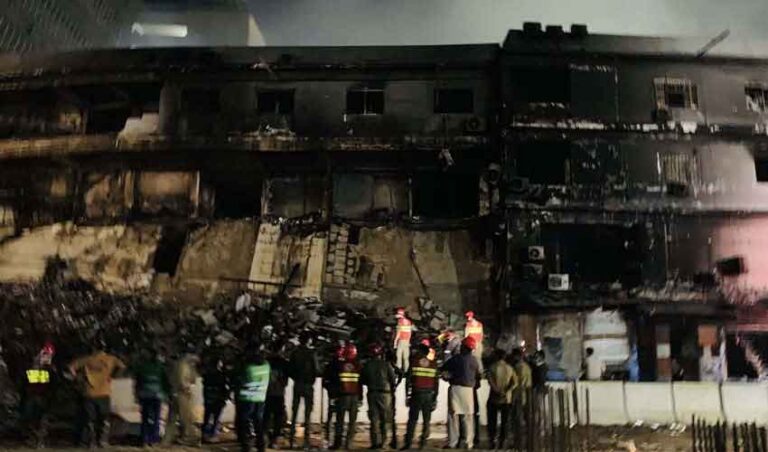 A heartbreaking development emerged during the ongoing search operation at Gul Plaza, where rescue teams recovered human organs and remains from the rubble of a burnt shop, deepening the tragedy of one of Karachi’s deadliest fire incidents in recent years.