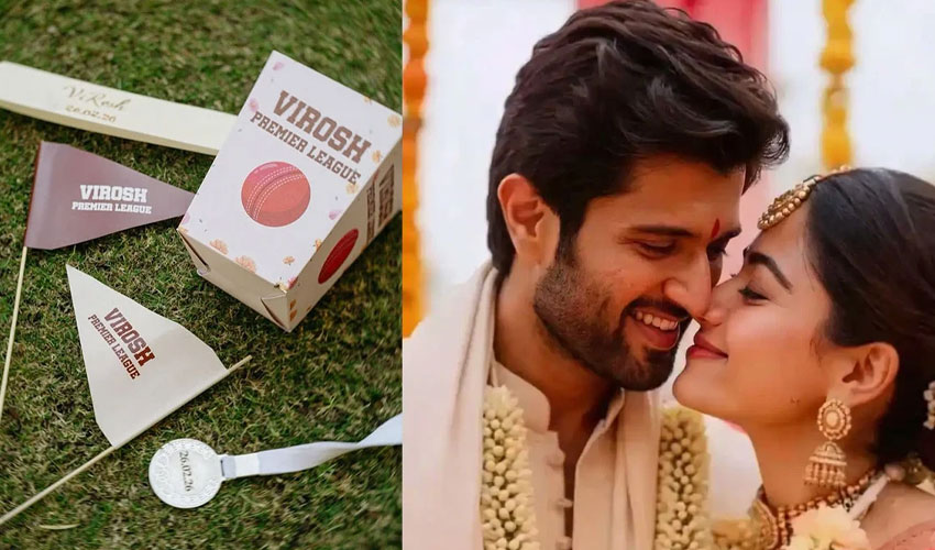 Wedding festivities for actors Vijay Deverakonda and Rashmika Mandanna have begun on a fun and sporty note. Instead of sticking to traditional pre-wedding photos, the couple surprised fans with a cricket-themed celebration they called the “Virosh Premier League.”